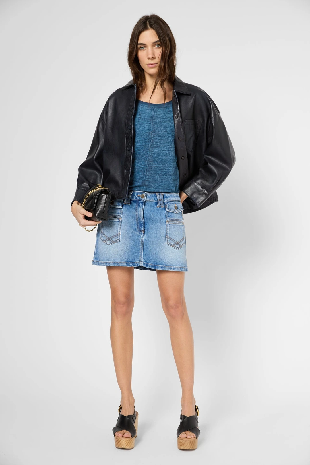 T-shirt ample à l'encolure dégagée. 100% lin flammé dans un esprit tie and dye.